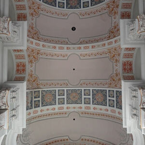Im Deckengemälde ist die Heilsgeschichte der Menschheit dargestellt: