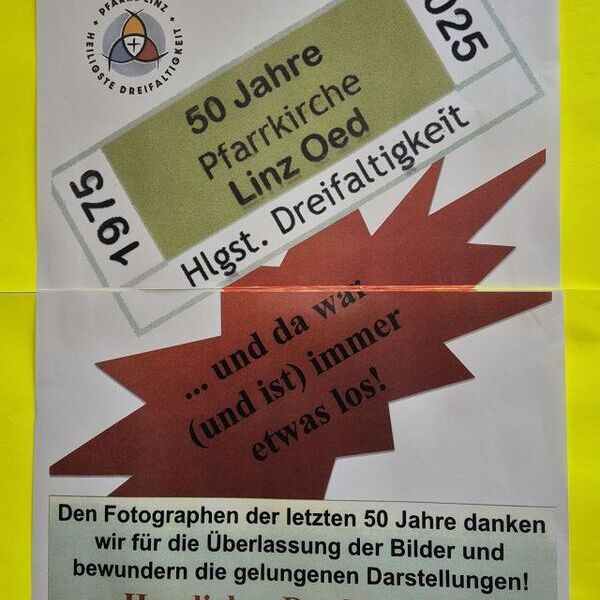 Mit Unterstützung vieler Pfarrmitglieder wurden unzählige Fotos, Dokumente, Zeitungsartikel, Texte gesammelt. Damit konnte diese Fotoausstellung - zur Feier des 50-jährigen Bestehens unserer Kirche Heiligste Dreifaltigkeit - verwirklicht werden.